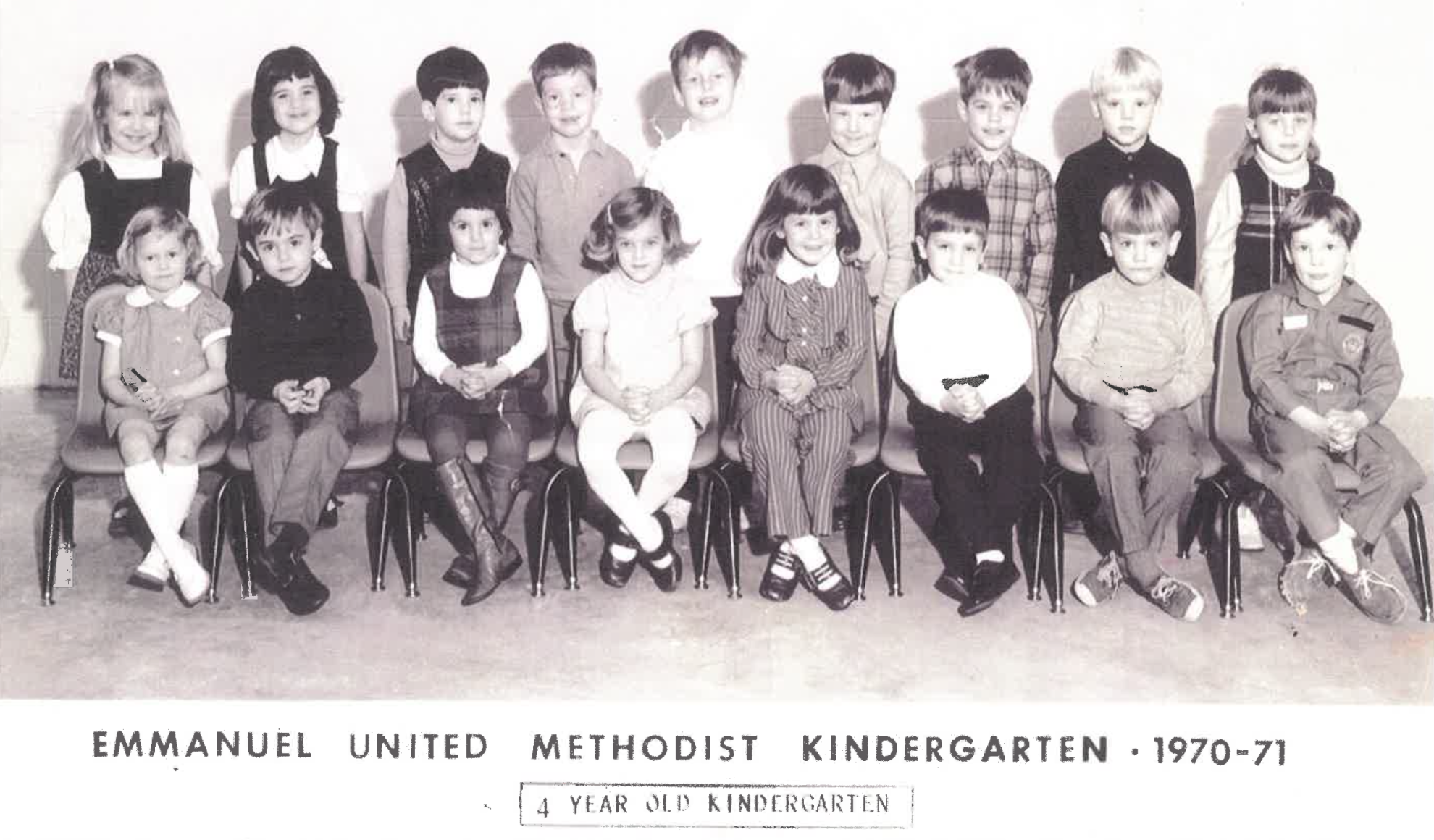 In the fall of 1970, Emmanuel United Methodist Church opened its doors to young children through Emmanuel United Methodist Kindergarten. Nelie Waller founded the early childhood program which began with one class of four year olds and one class of kindergarteners.