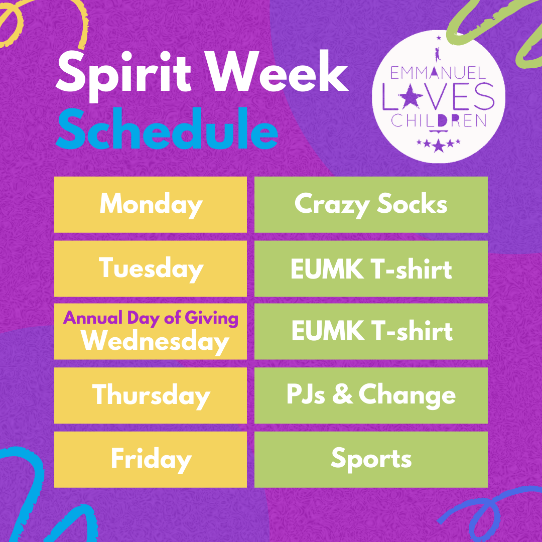 Our Annual Day of Giving and Spirit Week is an important week for our school and our children. We all enjoy special days all week and encourage all our families to participate in our Annual Day of Giving, Wednesday, April 27, and Kindergarten Sunday, May 1.